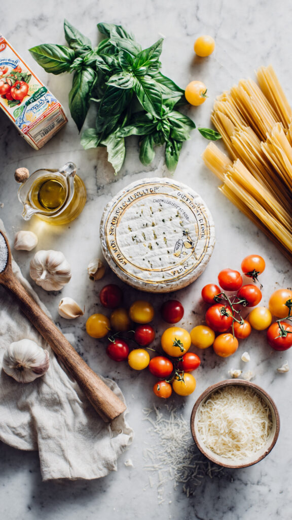 The magic of this Boursin Tomato Pasta Bake lies in its simplicity and the quality of its ingredients. Here’s everything you’ll need, with thoughtful substitutions for every dietary preference: