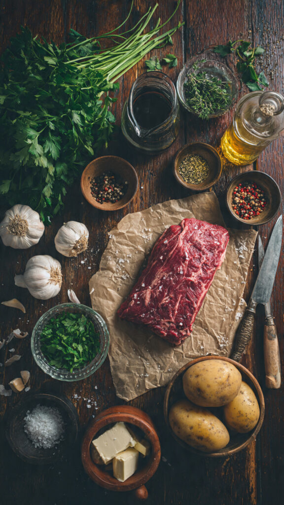The magic of this dish lies in the contrast between the rich, savory steak, the bright and tangy chimichurri, and the creamy, buttery mashed potatoes. Here’s everything you’ll need to create 4 impressive servings.