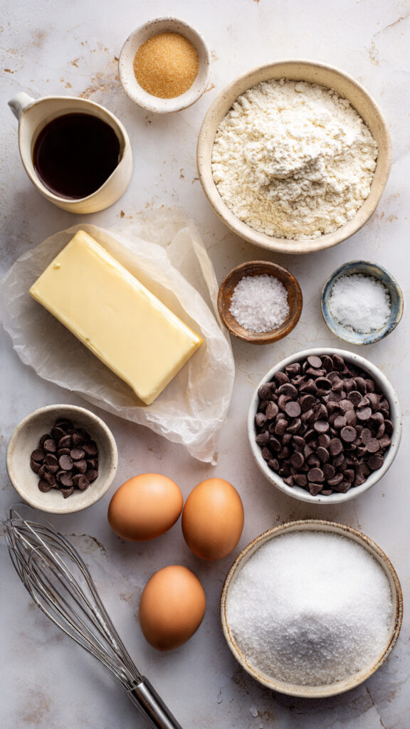 The magic of these soft chocolate chip cookies lies in the quality and balance of ingredients. Here’s everything you’ll need, with thoughtful substitutions for every dietary preference: