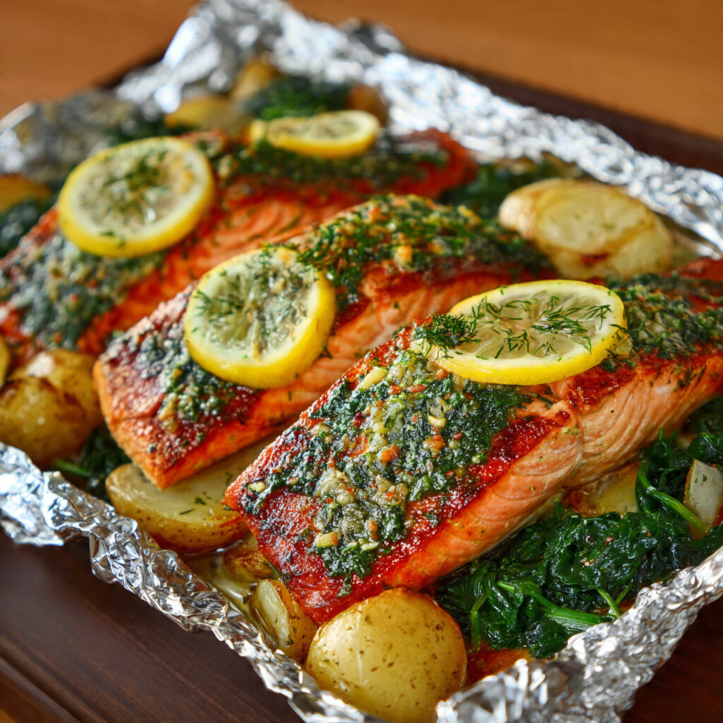 - Baked Salmon in Foil (Juicy and Flaky) – iFoodReal.com – https://ifoodreal.com/baked-salmon-recipe/