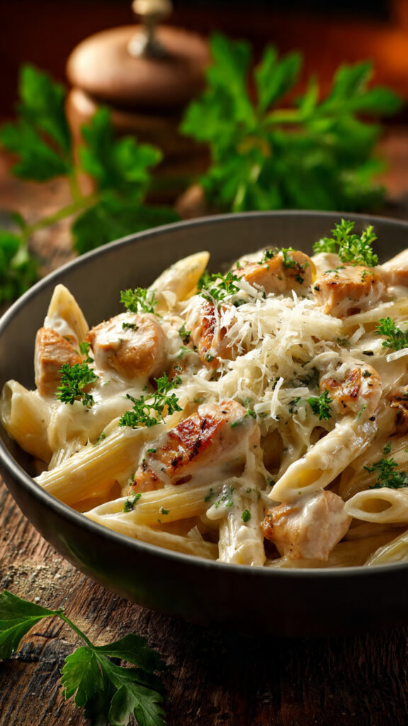 Vegetarian option? Skip the chicken and toss in some sautéed mushrooms and spinach instead. Still creamy, still delicious, just cluck-free.