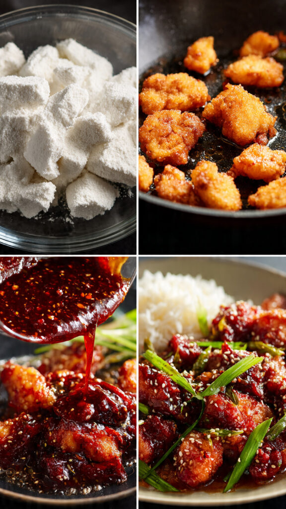 1. In a large bowl, toss the chicken pieces with cornstarch until evenly coated.