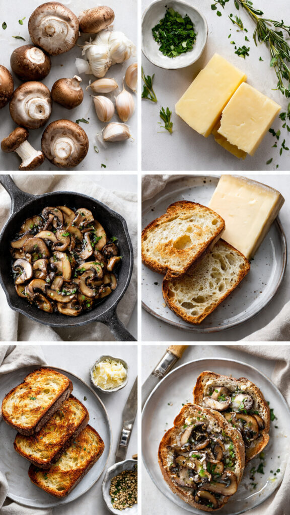Storage: Mushroom mixture refrigerates up to 3 days. Toast fresh when ready.