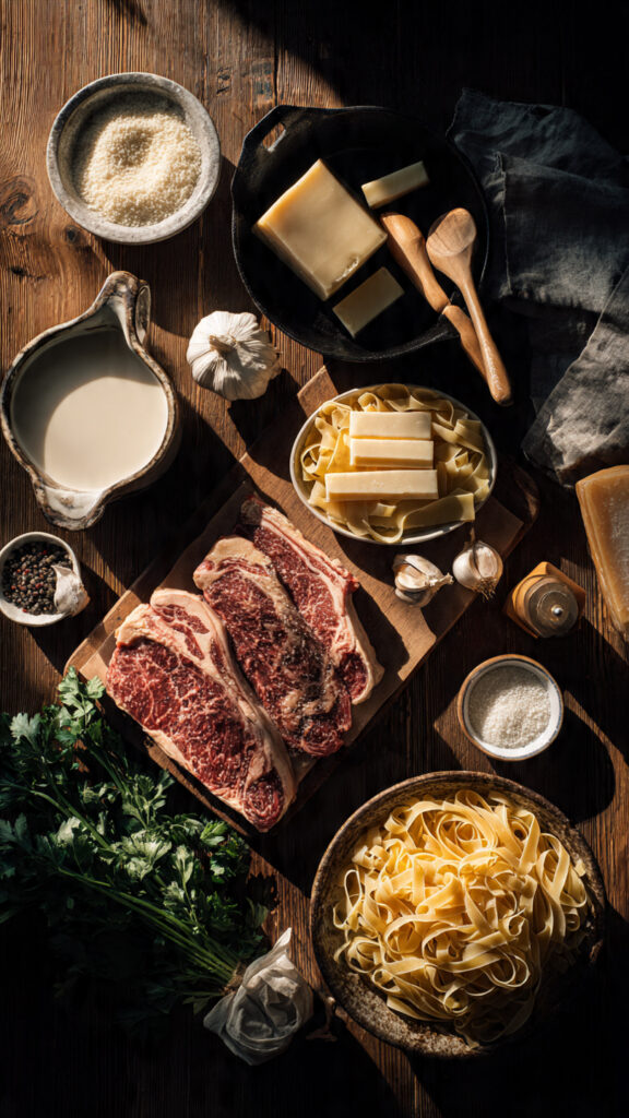 The magic of this Garlic Parmesan Steak Pasta lies in its perfectly balanced components. Here’s everything you’ll need, with thoughtful substitutions for every dietary preference: