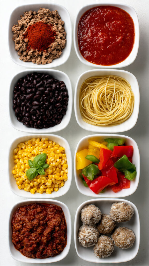 For our five ground beef crockpot recipes, we’ll need versatile ingredients that create different flavor profiles. Here’s what to gather for your slow-cooking adventures: