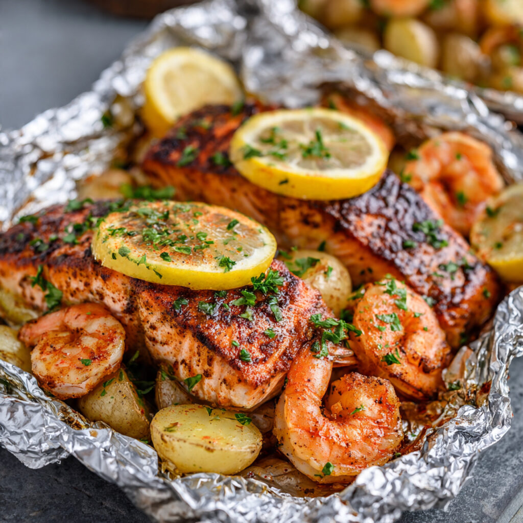 Recipe 4: Cajun Salmon and Shrimp Foil Packets