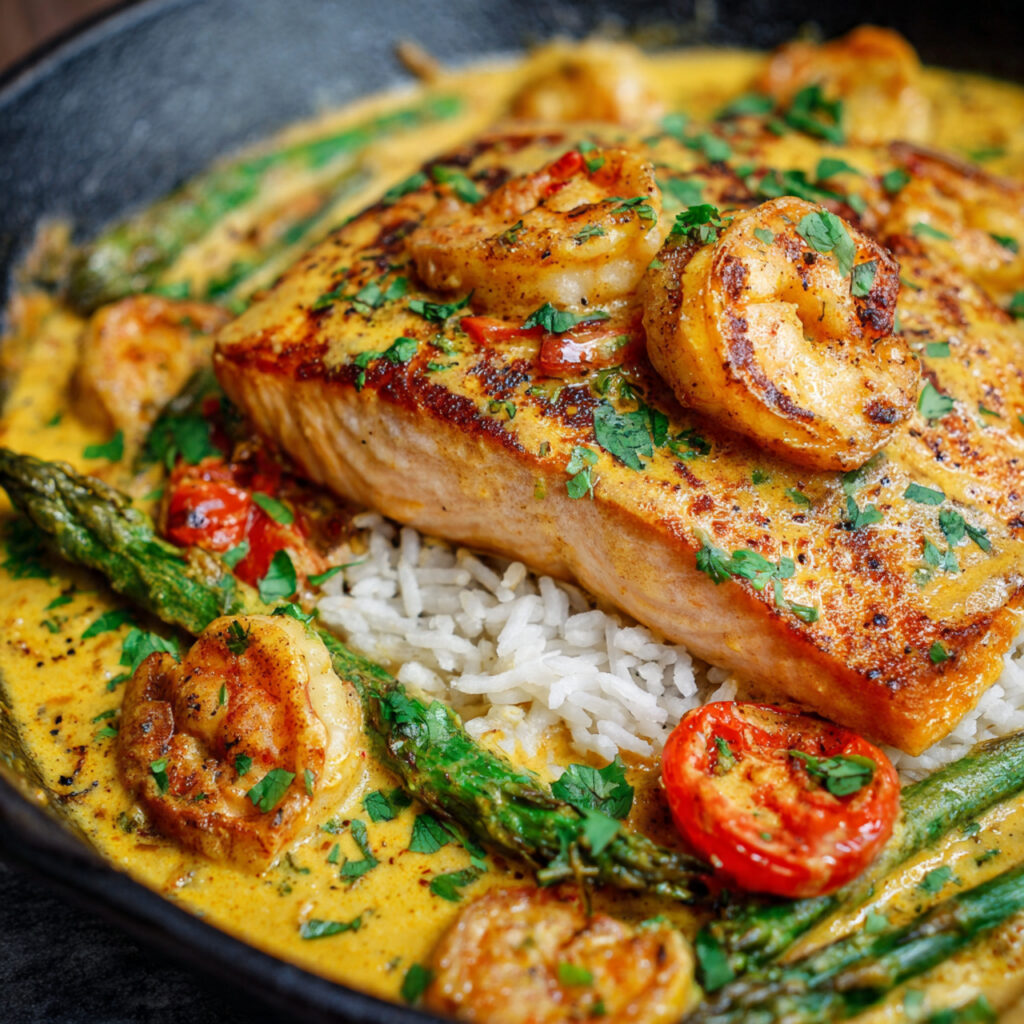 Recipe 5: One-Pan Coconut Curry Salmon and Shrimp