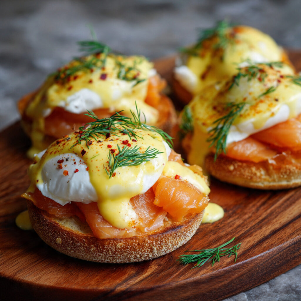 Salmon Eggs Benedict with Dill Hollandaise